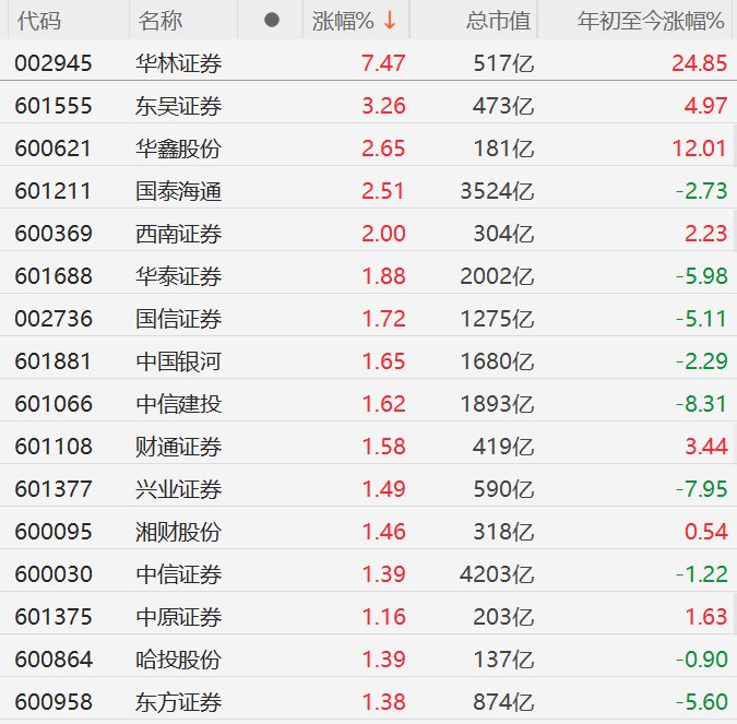 格隆汇2月4日|A股券商股走强,其中,华林证券涨超7%,东吴证券涨超3%,华鑫股份、国泰海通、西南证券涨超2%。