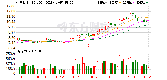 2025年前三季度,中国铝业实现收入1765.16亿元,归母净利润108.72亿元。