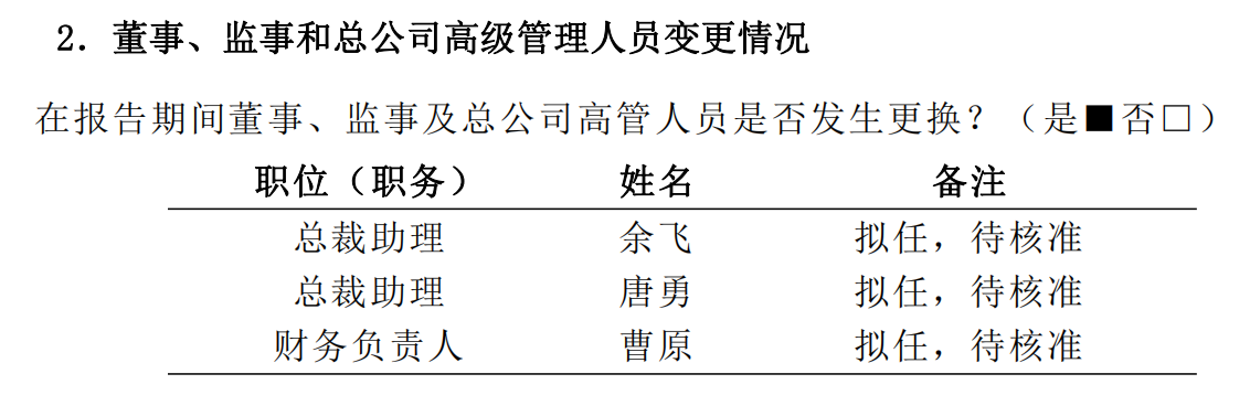根据最新披露的2025年第四季度偿付能力报告,本次调整涉及三位高管,副总裁曹原拟兼任财务负责人,余飞、唐勇两位省级分公司“一把手”拟升任总裁助理。