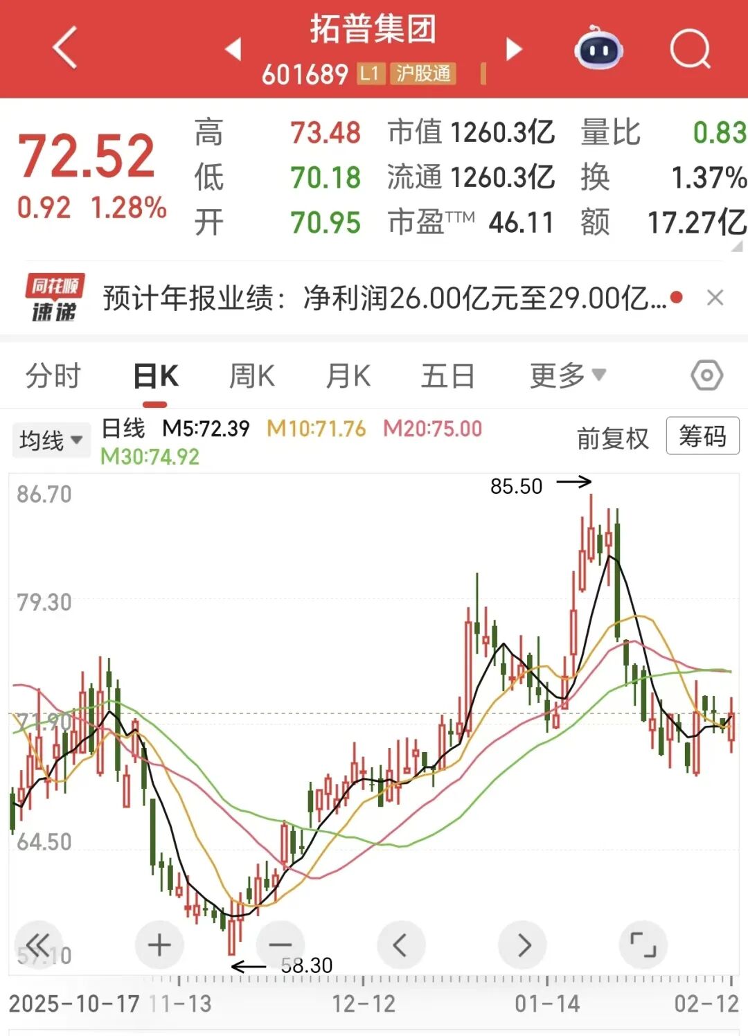 盈利预测与估值方面,中金公司结合行业环境及公司经营情况作出调整,考虑到下游客户销量及盈利能力承压,其下调了公司2026年盈利预期11.7%至37.0亿元,同时引入2027年盈利预期45.4亿元。从估值来看,当前股价对应2026年、2027年市盈率分别为33.6倍、27.4倍。