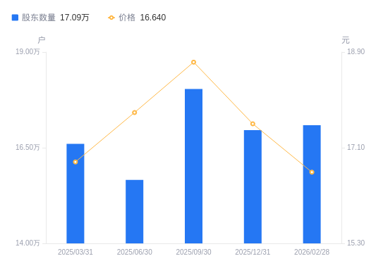 近一年(2024年12月31日至2025年12月31日),光大证券A股股东户数从17.88万户,减低至16.96万户,降幅5.14%,区间股价下跌8.08%。
