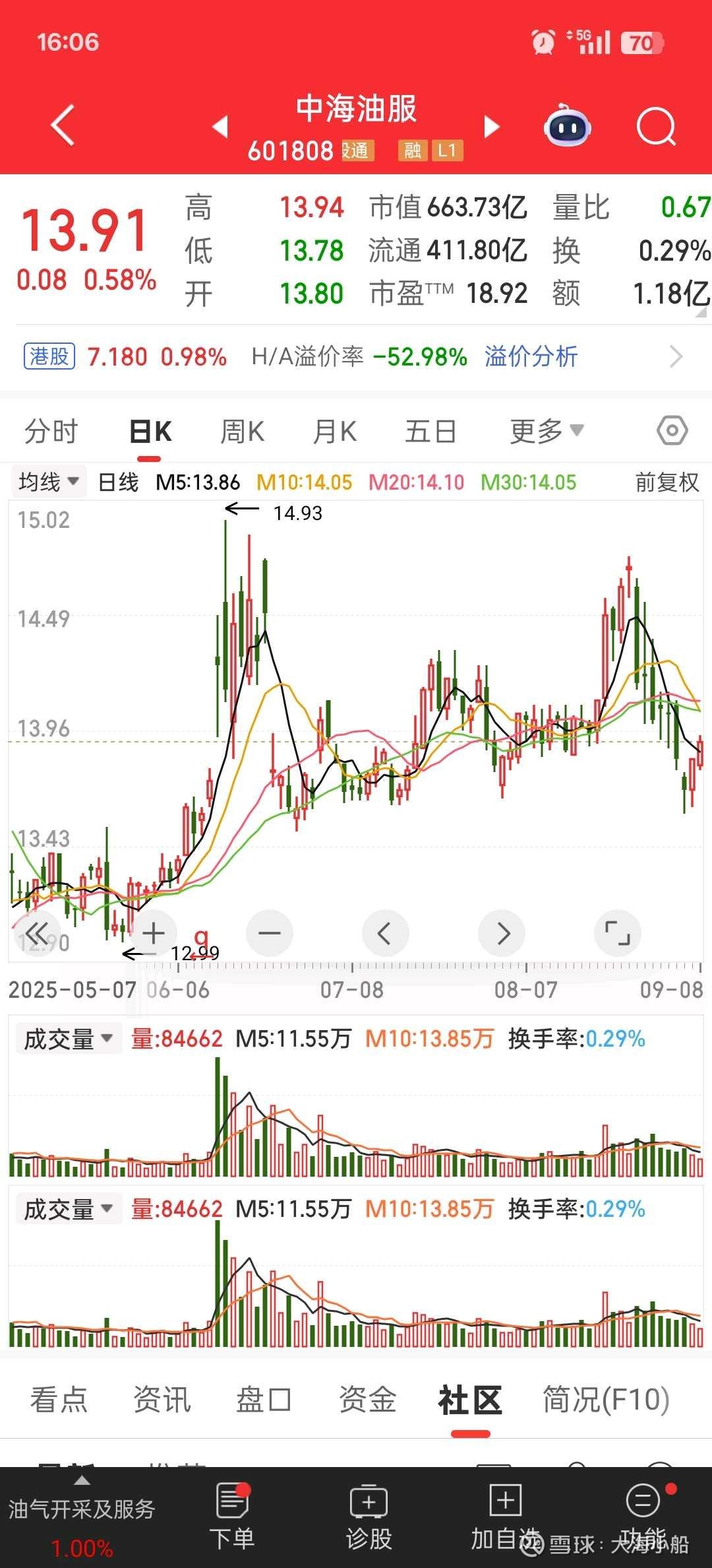 新一轮中海油服加仓启动,6.99加第一笔,越跌越加