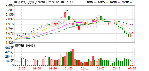 3月25日,A股市场震荡回暖,有色板块强劲冲高!有色ETF汇添富(159652)跳空高开,涨超4%!