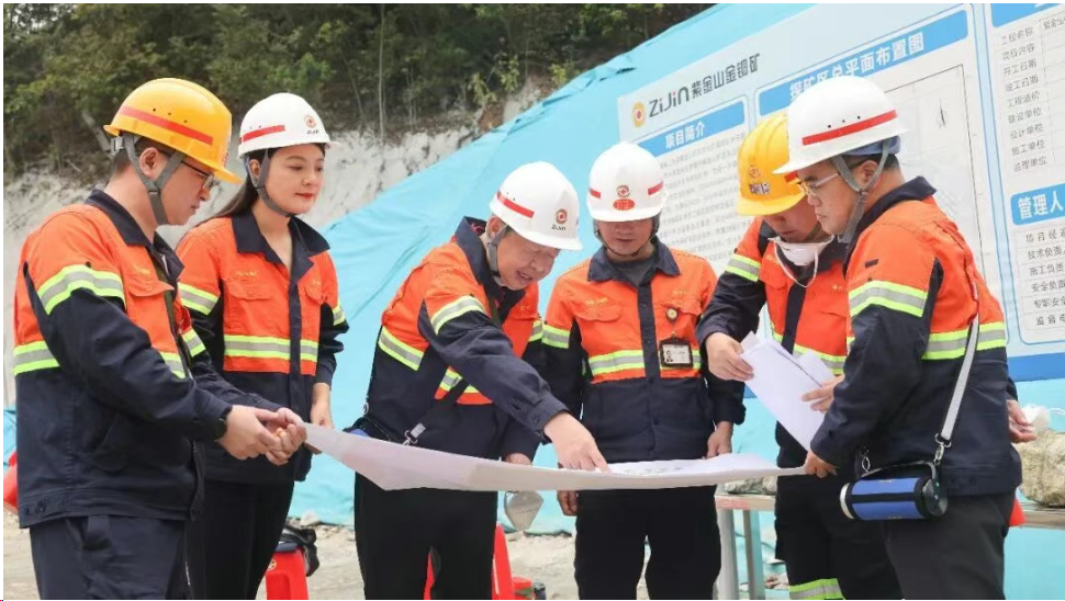 陈景河深入项目现场,详细了解项目进展,听取了紫金山金铜矿、地勘院紫金山项目组关于赤水斜坡道探矿巷、坑内钻的工程施工进度,及开展的地质找矿大会战工作情况的汇报。