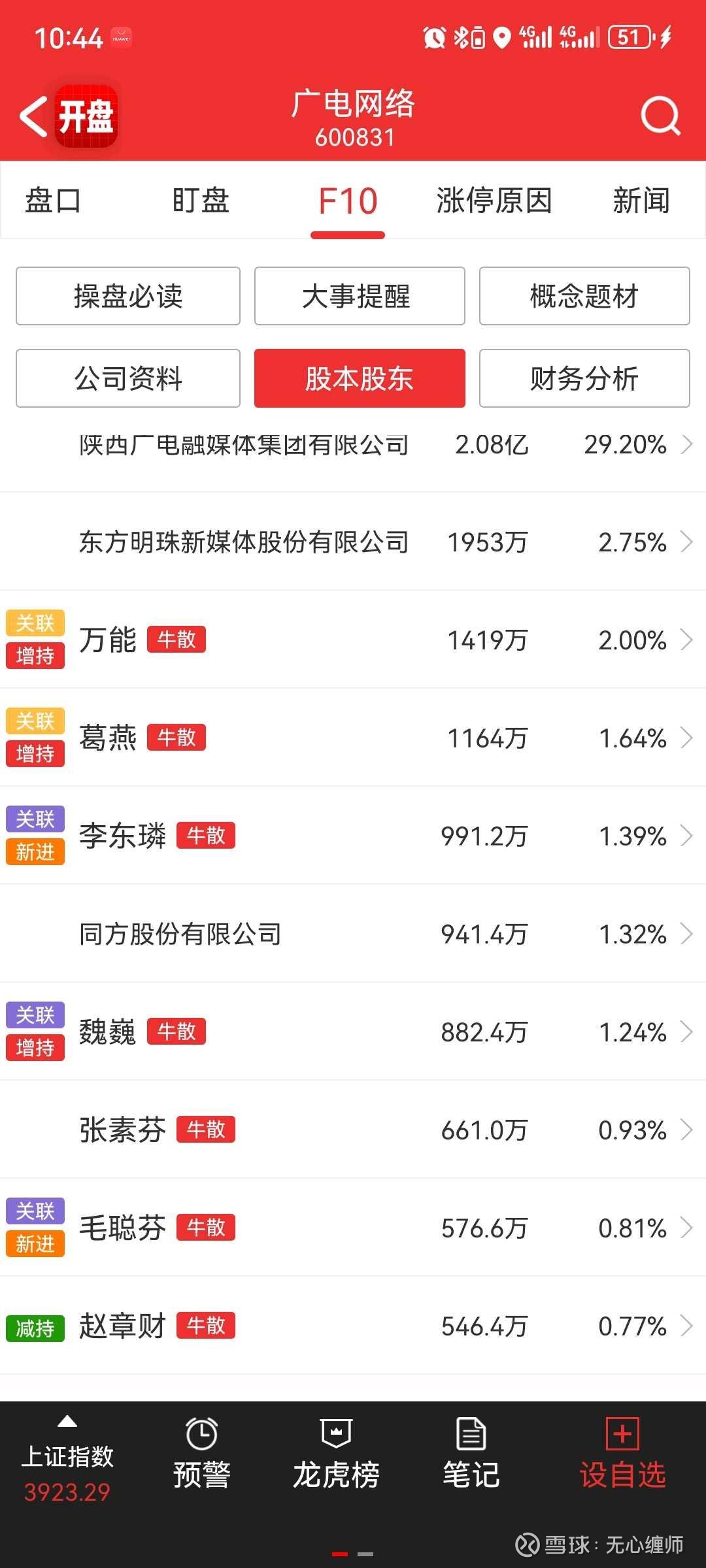 : 万能,葛燕是一伙的,魏巍,李东霖,毛聪芬是一伙的,张素芬和夏重阳媳妇,夏重阳之前买的吉视传媒暴涨,至于他们三伙人是不是认识,万能葛燕不清楚,但是我可以确定,魏巍和夏重阳,张素芬,徐翔,都认识。这票总共市值30亿,藏龙卧虎。