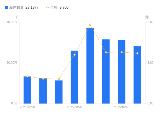 近一年(2024年12月31日至2025年10月10日),吉视传媒A股股东户数从13.07万户,增加至31.18万户,增幅138.62%,区间股价上涨102.67%。