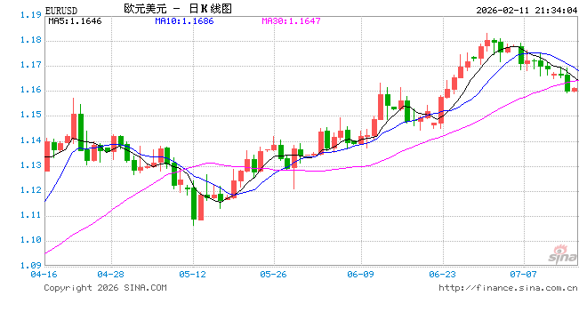 新浪外汇消息2026年02月11日,截至21时33分,外汇市场上欧元兑美元汇率跌破1欧元兑换1.1833美元。跌幅为-0.5129%