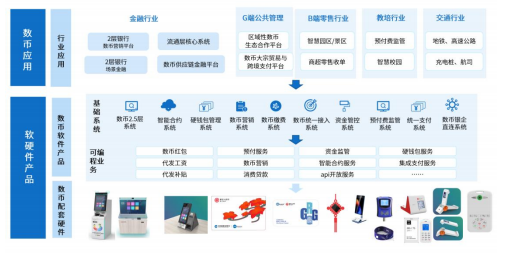 软件层面,为商业银行及机构提供智能合约、支付通道、核心业务系统等生态产品,打造广州、防城港等地市数字人民币区域性平台,已承建10家农信、城商银行数字人民币系统建设。