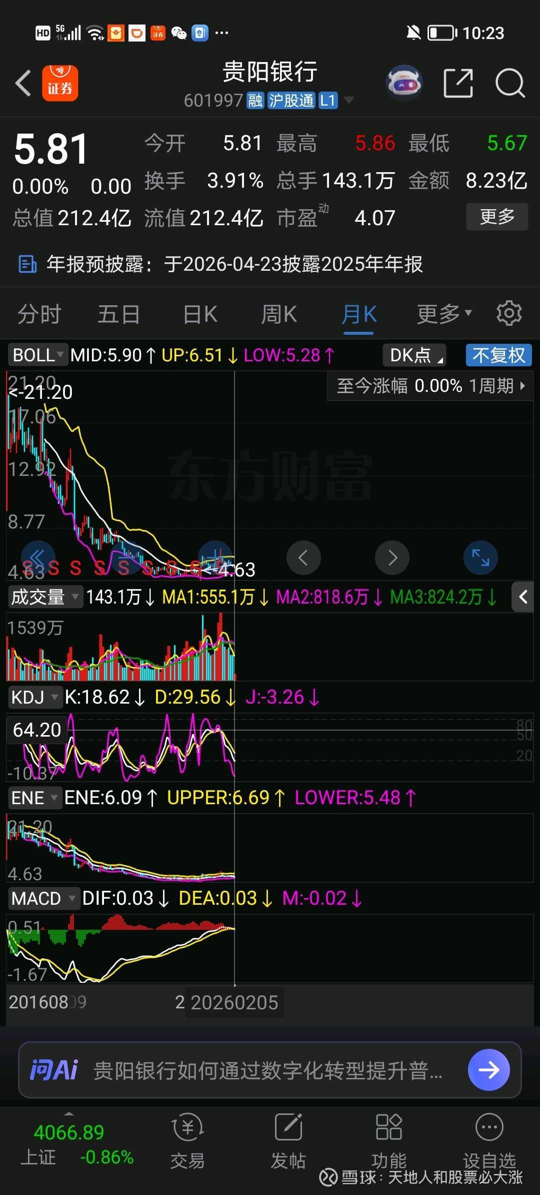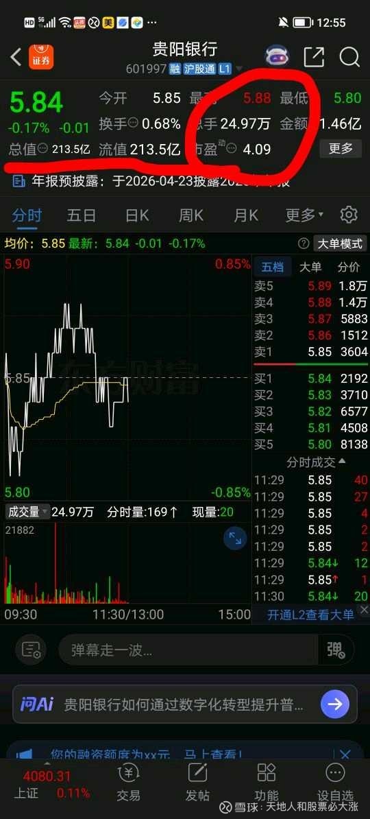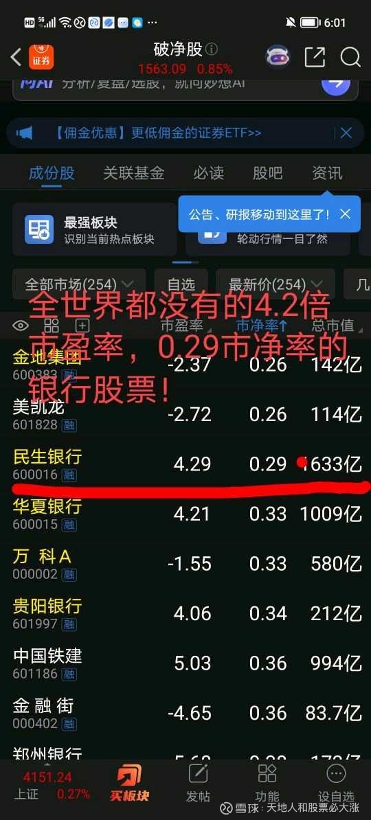 全部现金换成民生银行贵阳银行这样的5%股息率并且是享受到了极限严重罕见低估了0.29市净率和小而美0.33市净率贵阳银行百年稳赚不赔的4倍市盈率4年回本的股票!