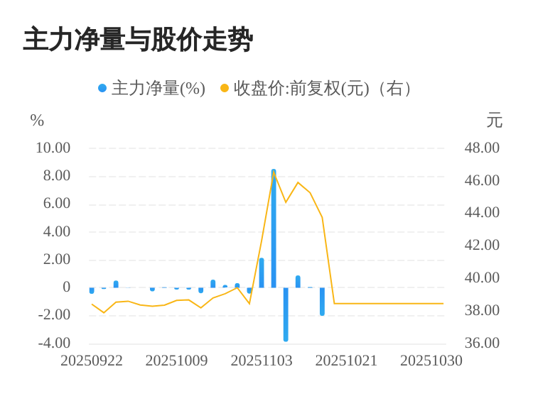 该股今日主力净量为负,且值较大,表明主力大幅流出,主动卖出明显多于主动买入。与此同时,今日换手率较高,主力抛售的嫌疑较大。投顾建议:投资者短期宜合理控制仓位,谨慎为佳。