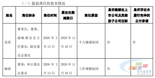 同日,杨倩女士因工作调整原因,辞去公司董事及董事会相关委员会职务和子公司相关职务。此外,公司董事会审议同意补选蔡学锋先生、徐丹萍女士为公司第五届董事会非独立董事候选人。