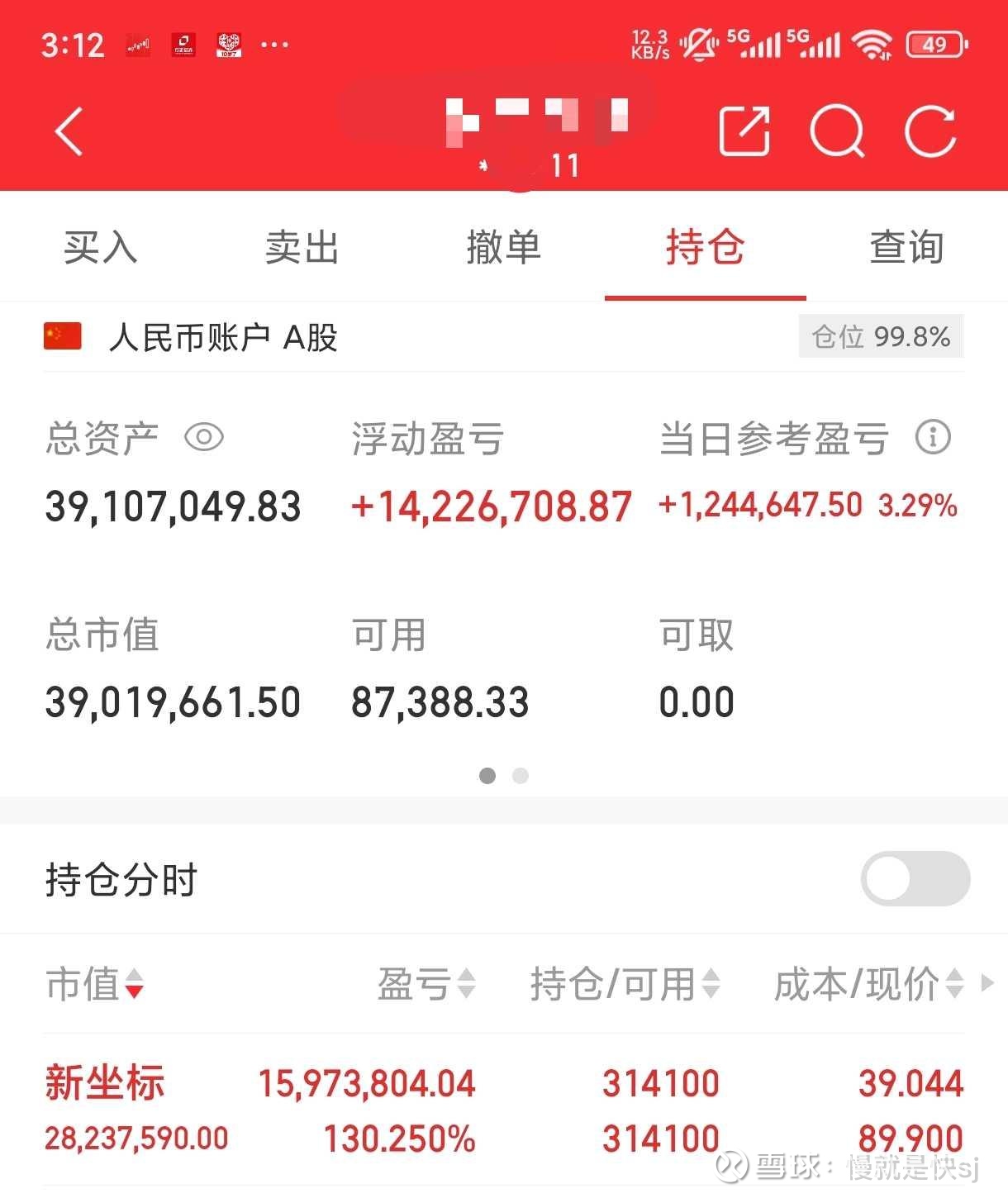 ,仓位变的更重了。我也是跟着慢大买的,最高收盘71%的盈利,这还是中间加了两次仓的结果,这次加仓心态多多少少有影响,但我相信拿到明年底新坐标会开花结果的,也再次感谢慢大