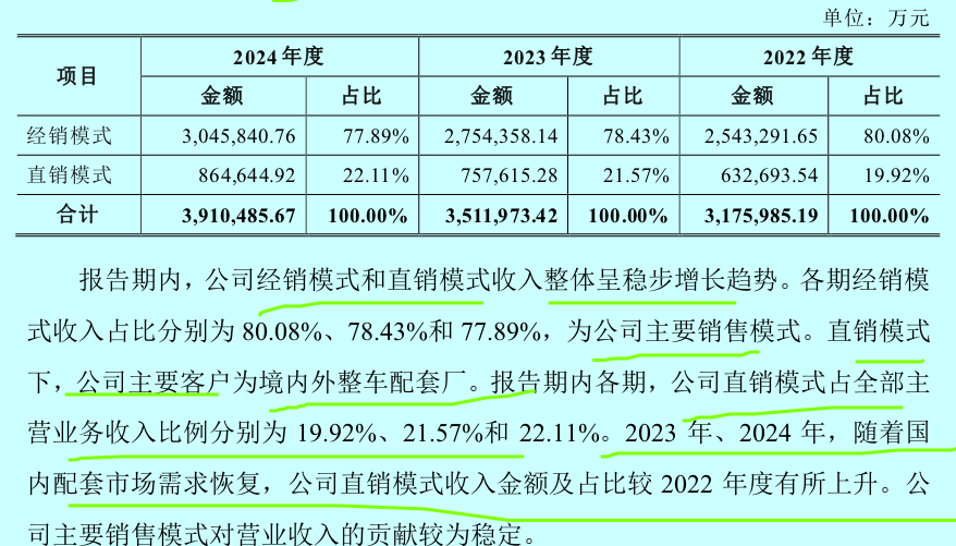 : 从这个直销和经销模式下的销售额也就可以看出,配套市场和替换市场的比例,