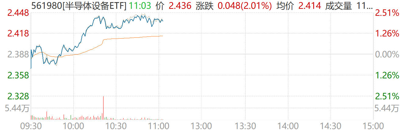 1月27日,半导体设备板块表现强势。截至上午11时04分,表征板块的半导体设备ETF(561980)涨2.01%,成分股中,与存储产业链高度相关的设备与材料公司领涨,芯源微(688037.SH)、金海通(603061)(603061.SH)、富创精密(688409.SH)、康强电子(002119)(002119.SZ)等涨幅居前。