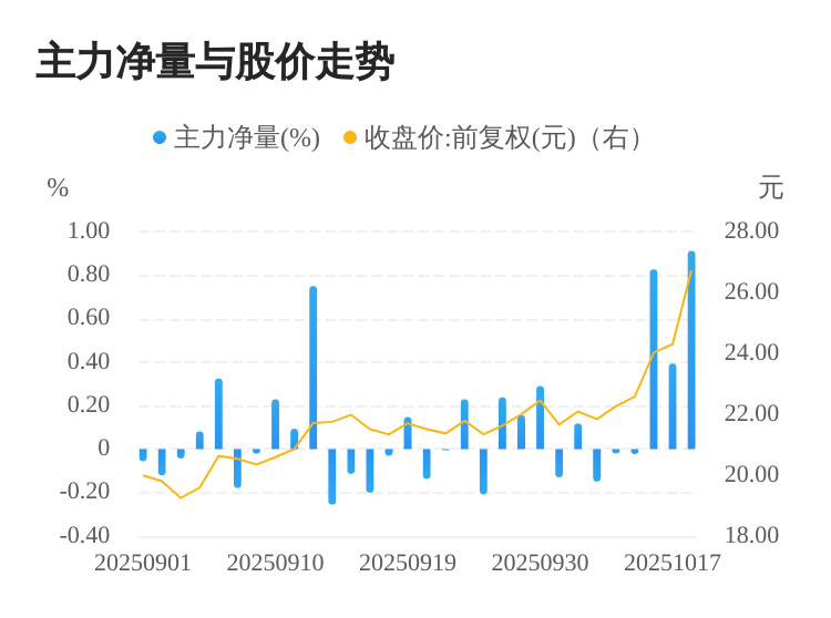 海汽集团(603069)10月20日主力(dde大单净额)净流入7696.35万元,涨跌幅为10.00%,主力净量(dde大单净额/流通股)为0.91%,两市排名91/5159。