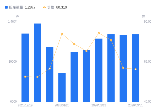 近一年(2025年3月31日至2026年3月31日),宏盛股份A股股东户数从1.05万户,增加至1.28万户,增幅22.02%,区间股价上涨151.92%。