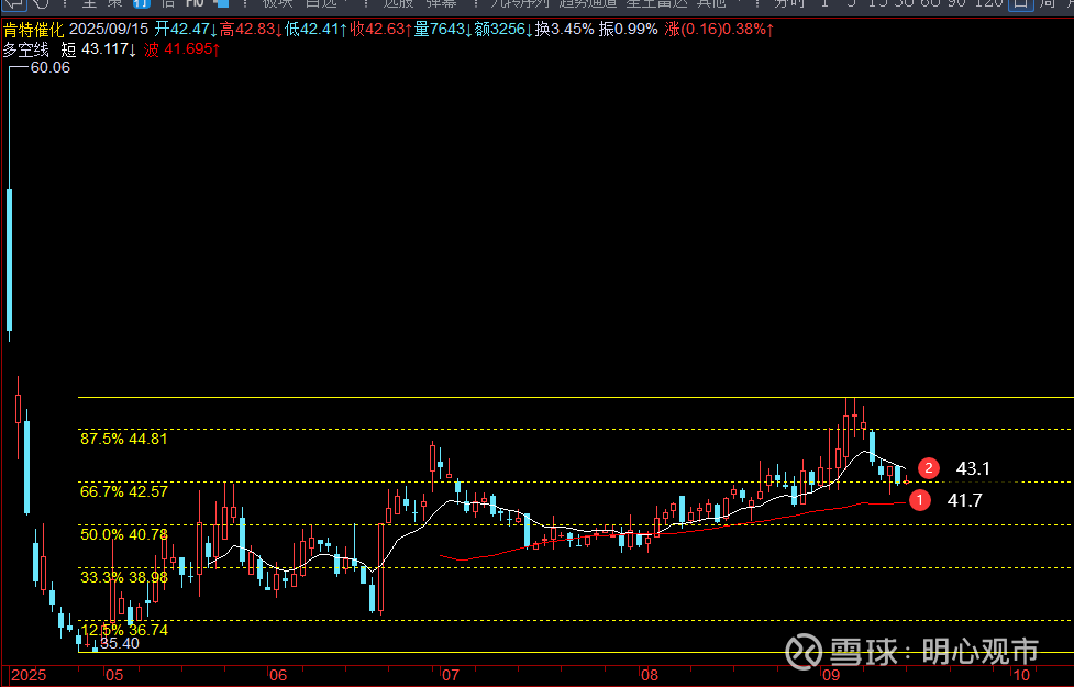 红色生命线41.7上,都可视为良性回撤,白线反压43.1,能站回转多