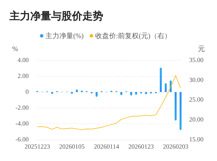 该股今日主力净量为负,且值较大,表明主力大幅流出,主动卖出明显多于主动买入。与此同时,今日换手率较高,主力抛售的嫌疑较大。投顾建议:投资者短期宜合理控制仓位,谨慎为佳。
