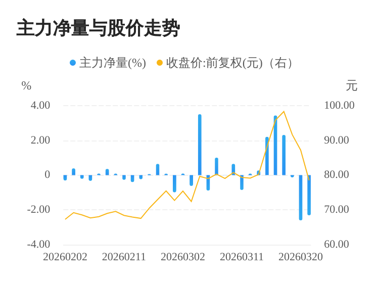 该股今日主力净量为负,且值较大,表明主力大幅流出,主动卖出明显多于主动买入。与此同时,今日换手率较高,主力抛售的嫌疑较大。投顾建议:投资者短期宜合理控制仓位,谨慎为佳。