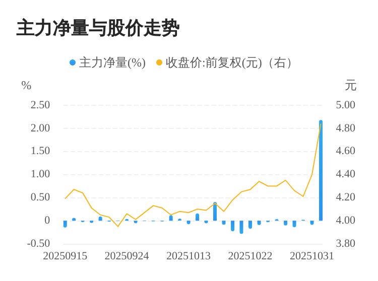 亚邦股份今日主力净量为正,且值较大,表明主力大幅流入,主动买入明显多于主动卖出。亚邦股份今日大涨10.00%,主力拉升明显。