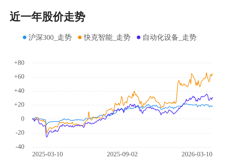 03月10日,快克智能(603203)股价继续上涨。截至今日收盘,快克智能上涨2.63%,收盘价为40.95元,盘中股价最高触及42.41元,股价创历史新高。