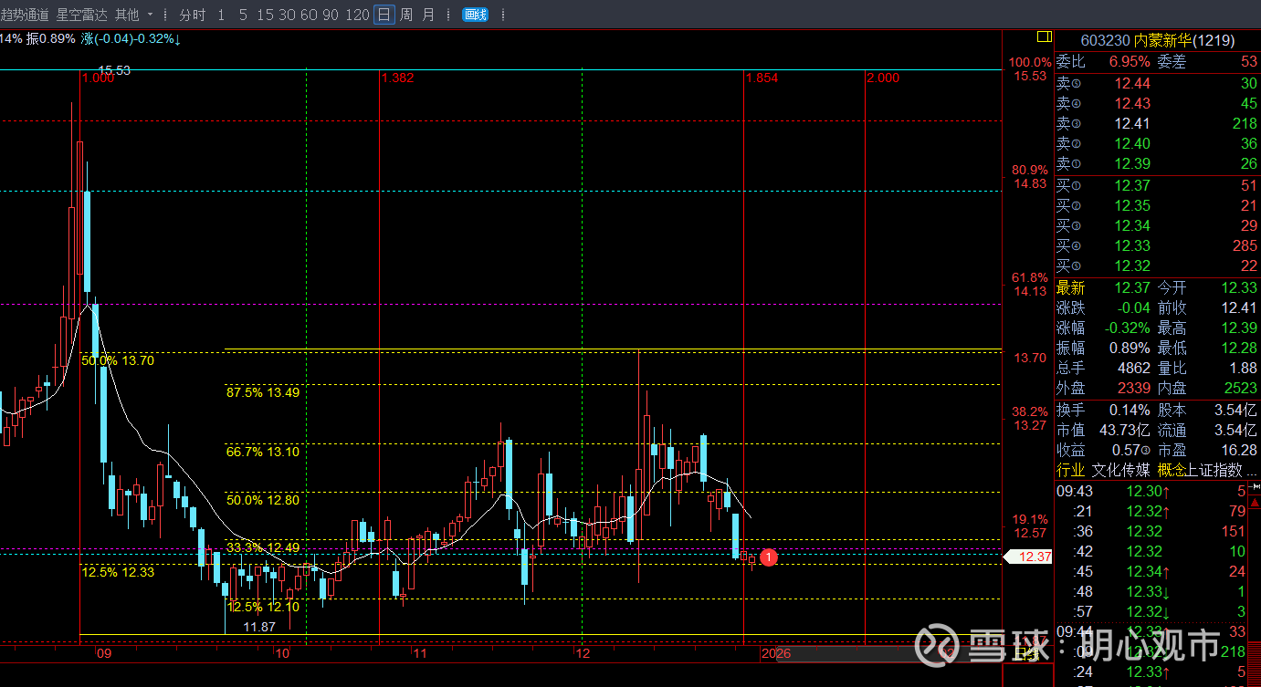 站在2025年末的节点,内蒙新华的股价像一艘困在浅滩的驳船——12.3至12.8元的狭仄空间里来回踱步,成交量萎缩到不足3万手。这家坐拥内蒙古教材发行垄断权的文化国企,正经历着业绩滑坡与政策红利、资金观望与估值洼地的撕裂式博弈。深度数据穿透后,一幅"根基稳固却增长失速、估值便宜但催化剂...
