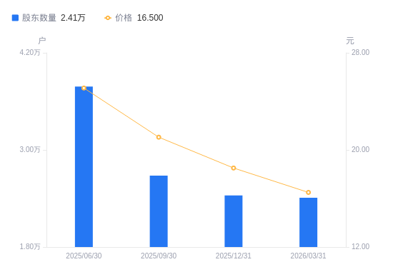 近一年(2025年3月31日至2026年3月31日),电魂网络A股股东户数从2.57万户,减低至2.41万户,降幅6.40%,区间股价下跌25.41%。