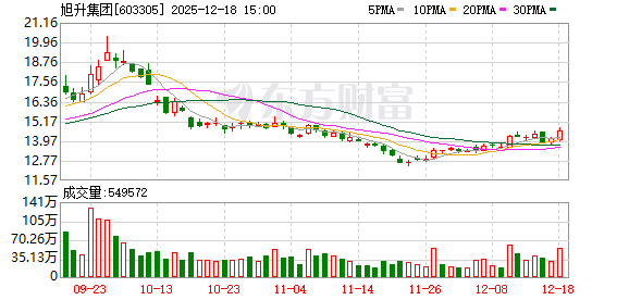 交易行情显示,12月18日,旭升集团收涨3.34%,收于14.56元/股,总市值168.3亿元。