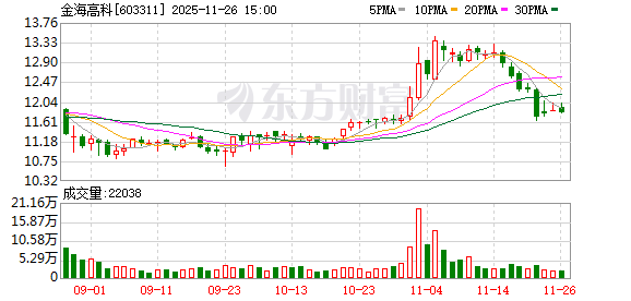 11月26日,金海高科(603311)发布公告,截至2025年11月25日,公司已回购335万股,占总股本的1.4207%,实际回购金额为4000万元,回购价格区间为10.64元/股至13.19元/股。