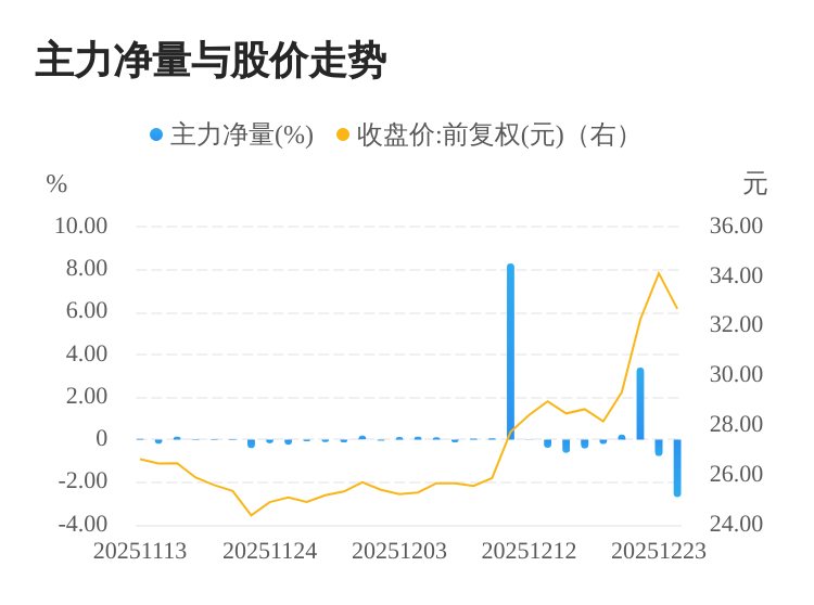 该股今日主力净量为负,且值较大,表明主力大幅流出,主动卖出明显多于主动买入。与此同时,今日换手率较高,主力抛售的嫌疑较大。投顾建议:投资者短期宜合理控制仓位,谨慎为佳。