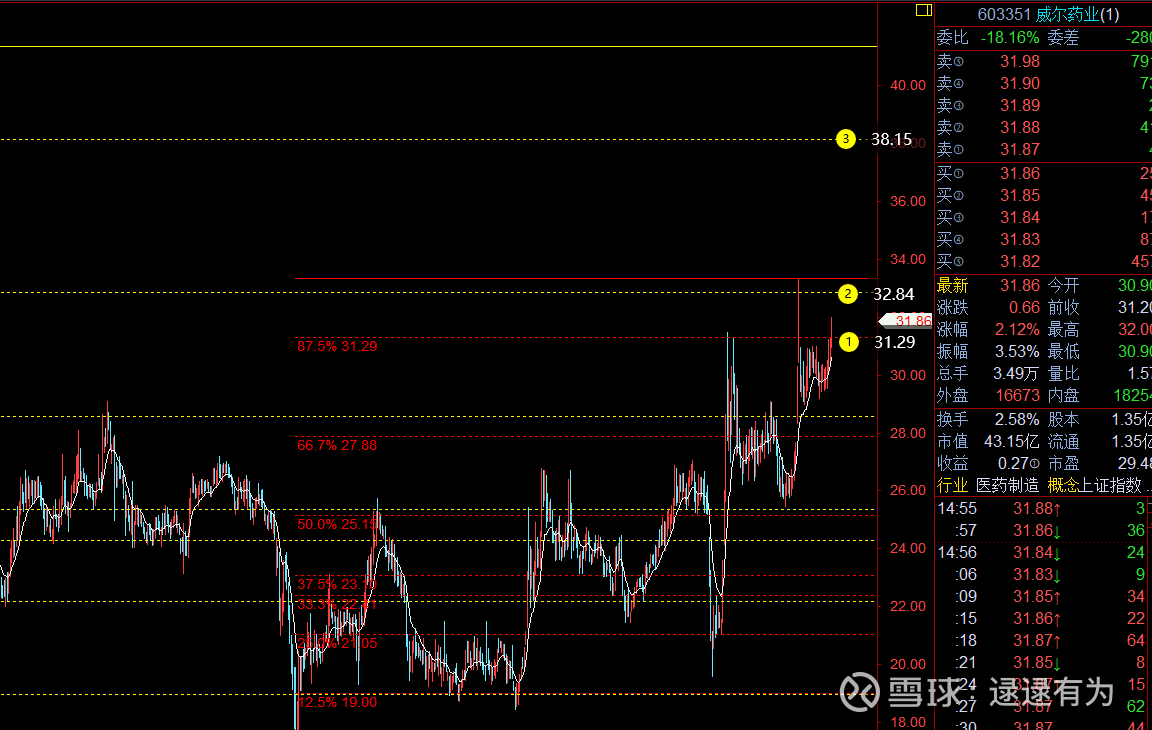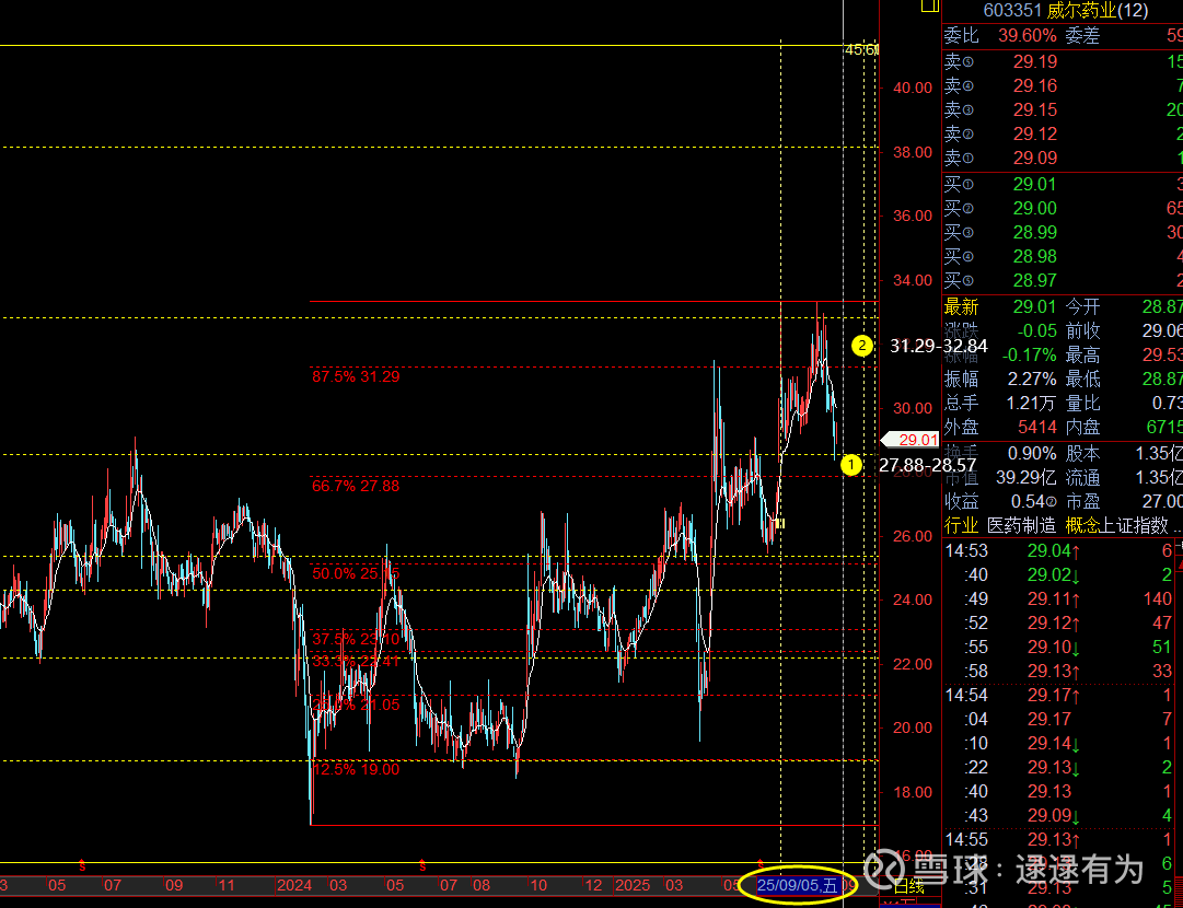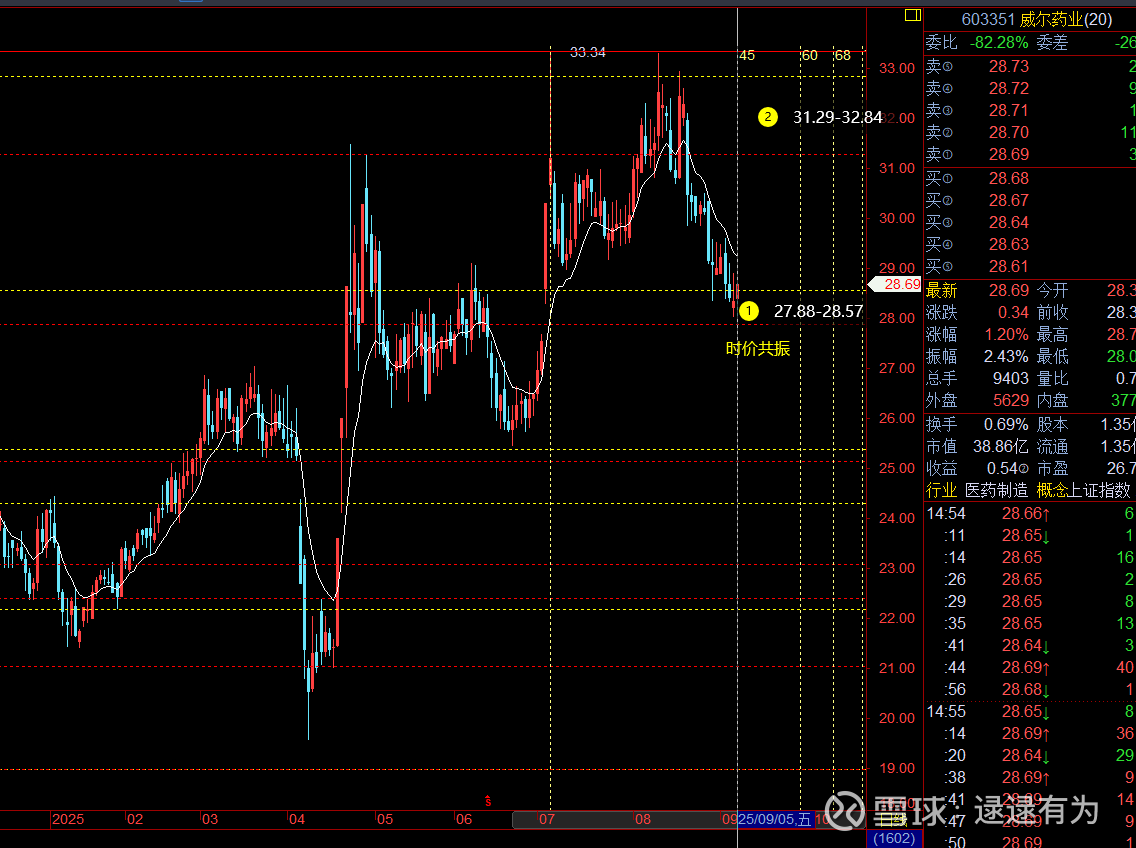 :空间支撑27.88-28.57,空间阻力31.29-32.84区间。时间窗口9月5日。$威尔药业(SH6033...