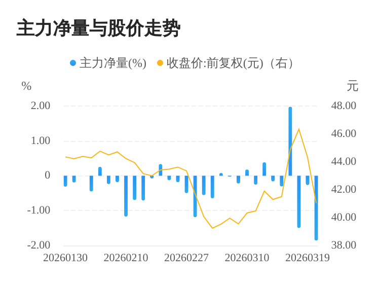 该股今日主力净量为负,且值较大,表明主力大幅流出,主动卖出明显多于主动买入。与此同时,今日换手率较高,主力抛售的嫌疑较大。投顾建议:投资者短期宜合理控制仓位,谨慎为佳。