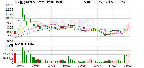 截至12月9日收盘,东珠生态的股价9.18元/股,总市值41亿元。