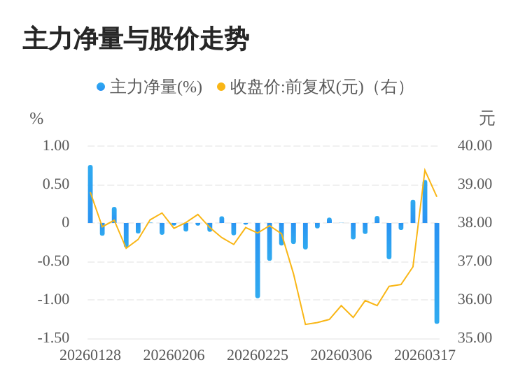 该股今日主力净量为负,且值较大,表明主力大幅流出,主动卖出明显多于主动买入。与此同时,今日换手率较高,主力抛售的嫌疑较大。投顾建议:投资者短期宜合理控制仓位,谨慎为佳。