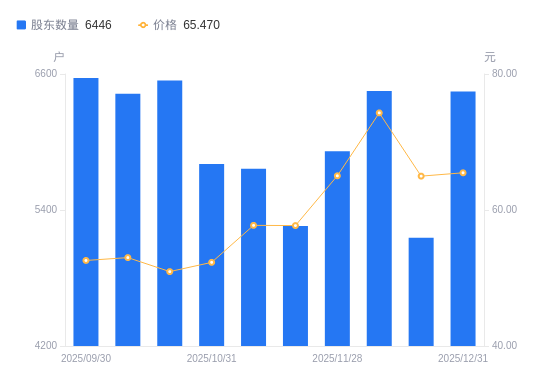 近一年(2024年12月31日至2025年12月31日),力聚热能A股股东户数从1.44万户,减低至6446户,降幅55.22%,区间股价上涨64.09%。