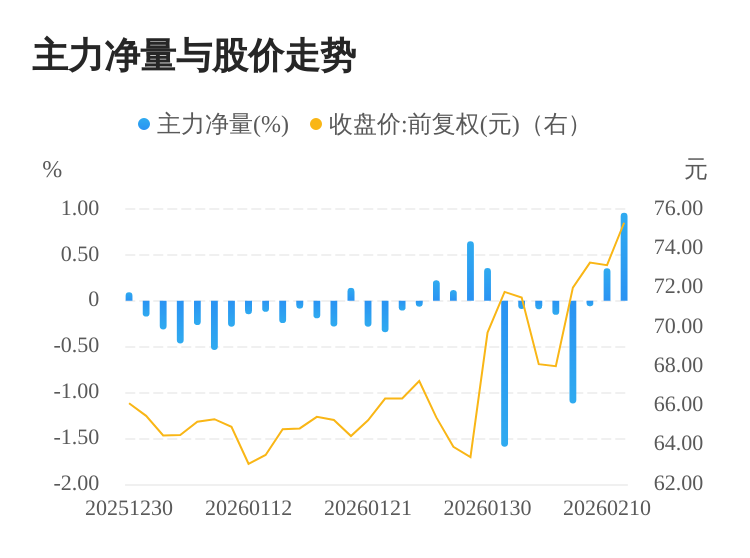 力聚热能(603391)02月11日主力(dde大单净额)净流入1696.47万元,涨跌幅为2.95%,主力净量(dde大单净额/流通股)为0.96%,两市排名77/5190。