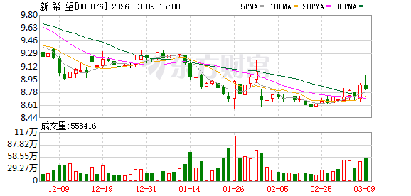 3月6日,新希望(000876.SZ)发布公告,公司2026年2月销售商品猪98.22万头,环比下降12.44%,同比增长19.97%;商品猪销售收入13.27亿元,环比下降18.49%,同比下降7.42%;商品猪销售均价11.45元/公斤,环比下降8.25%,同比下降21.79%。