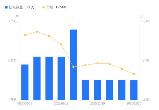 近一年(2024年12月31日至2025年11月30日),ST绝味A股股东户数从5.06万户,减低至5万户,降幅1.15%,区间股价下跌19.13%。