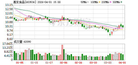 4月1日,惠发食品(603536)发布公告,截至2026年3月31日,公司通过集中竞价交易方式累计回购303万股,占总股本的1.25%,回购资金总额为2992万元,回购价格区间为9.01元/股至10.43元/股。