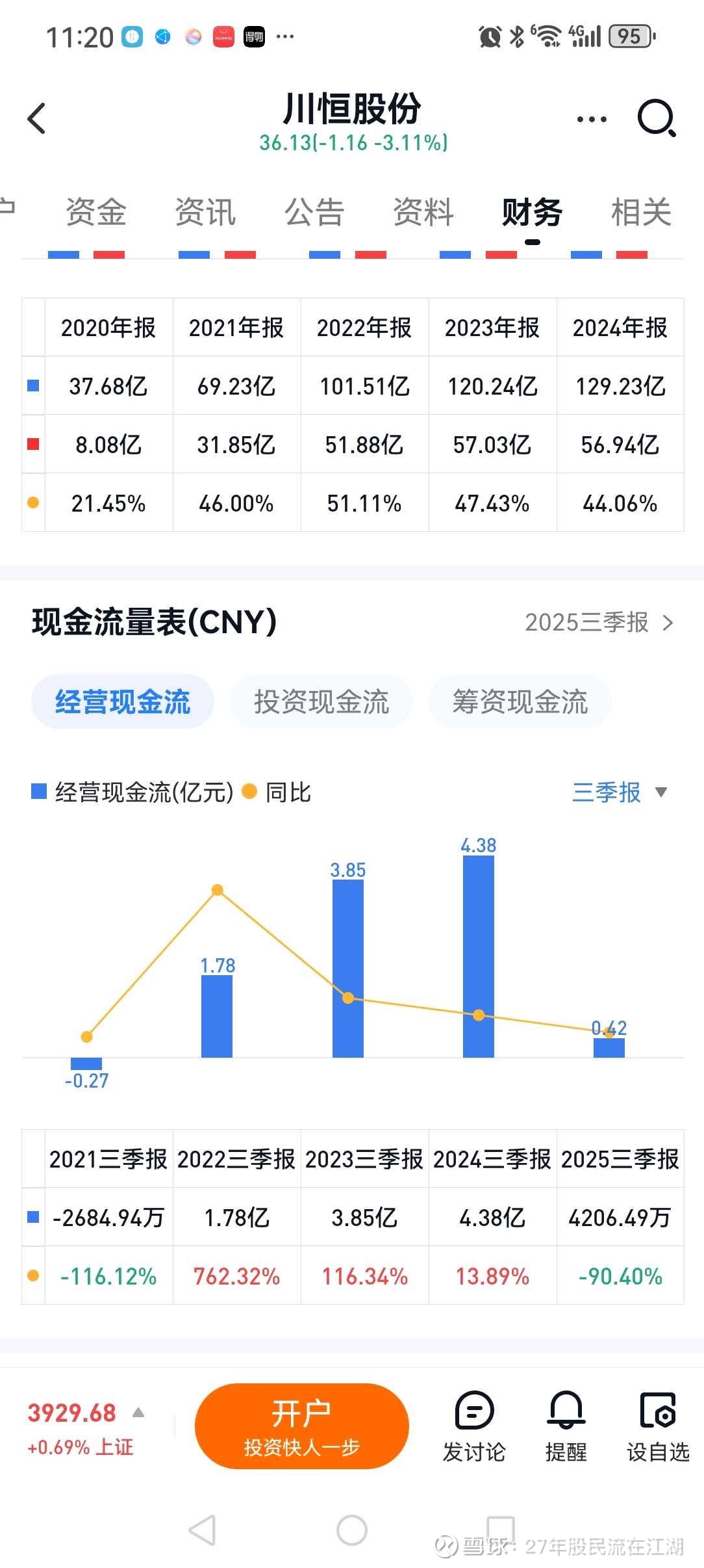 :如果搞川恒,等它股息率比中创智领高的时候,最多也是搞短线,川恒经营现金流基本没有