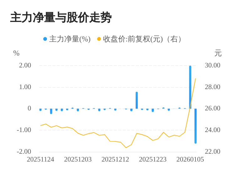 该股今日主力净量为负,且值较大,表明主力大幅流出,主动卖出明显多于主动买入。与此同时,今日换手率较高,主力抛售的嫌疑较大。投顾建议:投资者短期宜合理控制仓位,谨慎为佳。