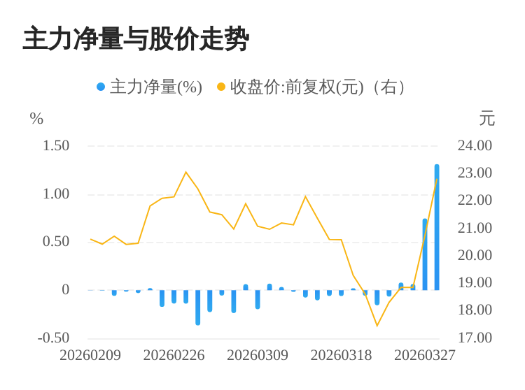 苏利股份(603585)03月30日主力(dde大单净额)净流入5409.70万元,涨跌幅为9.98%,主力净量(dde大单净额/流通股)为1.31%,两市排名47/5192。