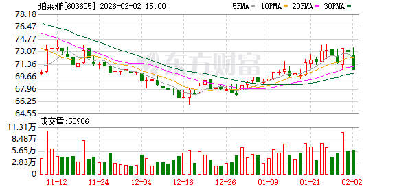 2月2日,珀莱雅(603605)发布公告,截至2026年1月31日,公司已回购29万股,占总股本的0.07%,回购资金总额为2050万元,回购价格区间为69.76元/股至73元/股。