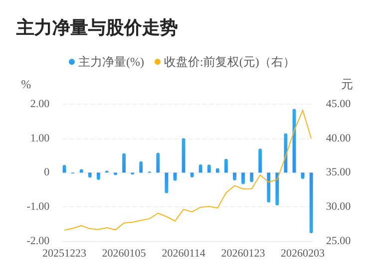利通电子(603629)02月04日主力(dde大单净额)净流出1.82亿元,涨跌幅为-9.30%,主力净量(dde大单净额/流通股)为-1.77%,两市排名5144/5186。