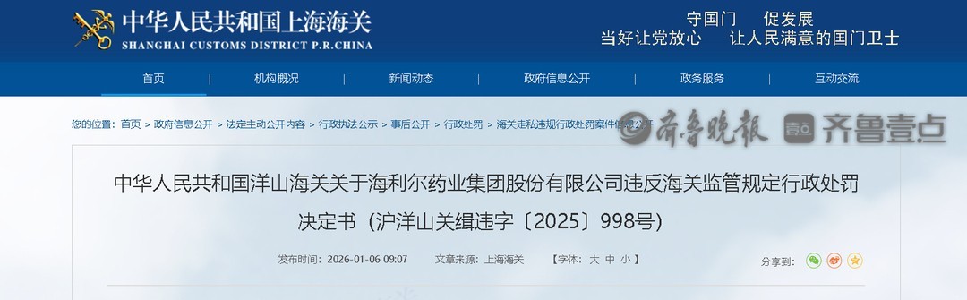 近日,中华人民共和国洋山海关发布关于海利尔(603639)药业集团股份有限公司(海利尔 603639)违反海关监管规定行政处罚决定书(沪洋山关缉违字〔2025〕998号)。