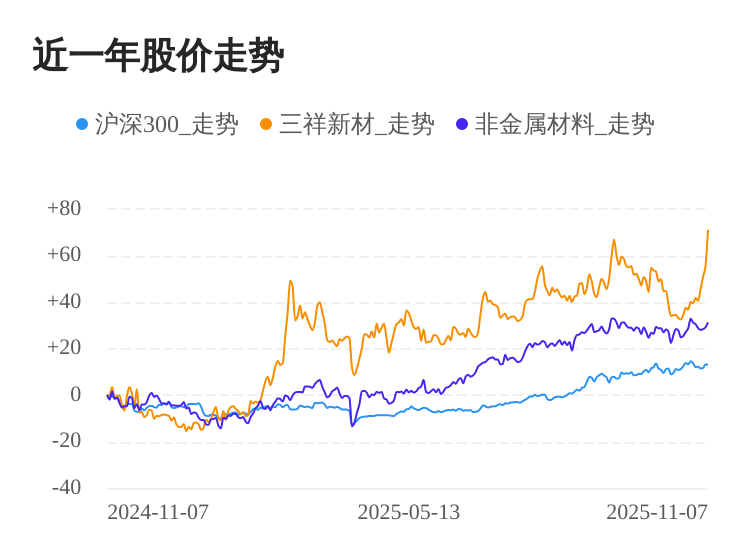 11月07日,三祥新材(603663)股价大涨。截至今日收盘,三祥新材上涨10.02%,收盘价为31.96元,收盘价创历史新高。