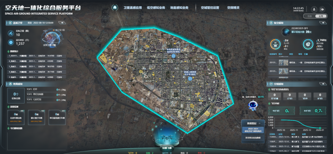 以此为基础,构建了“天、空、地”一体化三维感知体系,通过融合卫星遥感、无人机集群与地面物联设备,并整合空域动态、飞行器状态、气象地理等多维数据,依托融合感知大模型,为智慧城管、应急指挥、物流配送等低空应用场景提供智能化决策与调度支持。此次实践不仅推动了武威城市治理的精细化转型,更形成了一套以“微塔台+数字平台”为核心、可复制推广的低空经济解决方案,为全省乃至全国的低空数字化发展提供了重要范式。