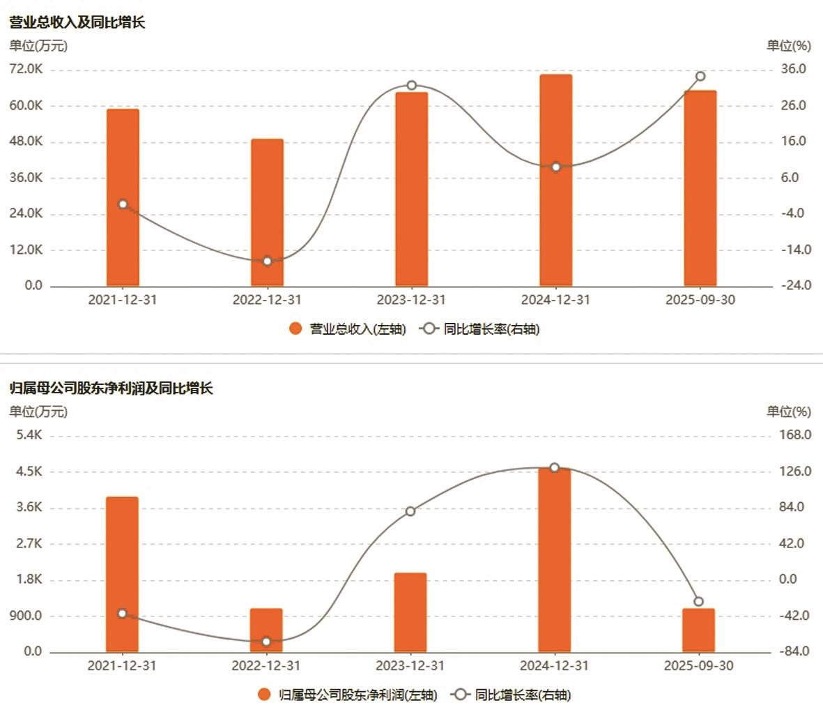 2025年前三季度,德宏股份实现营业收入6.54亿元,同比增长34.29%;归母净利润1106.21万元,同比下降24.80%。其中,第三季度营收为2.4亿元,同比增长44.37%;归母净利润111.75万元,扭亏为盈。