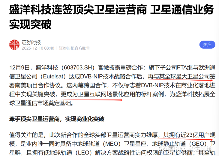 1,盛洋科技(603703.SH):子公司FTA与某全球最大卫星公司签署南美项目合作协议