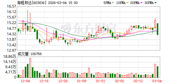 证券日报网讯 3月4日,海程邦达发布公告称,截至 2026 年 3 月 4 日,公司通过集中竞价交易方式已累计回购股份 4,134,100股,占公司总股本的比例为 2.01%。